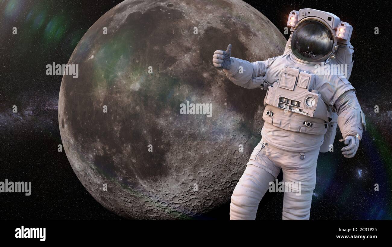 Astronaut Showing Thumbs Up In Orbit Of The Moon Stock Photo Alamy